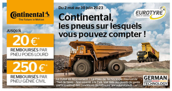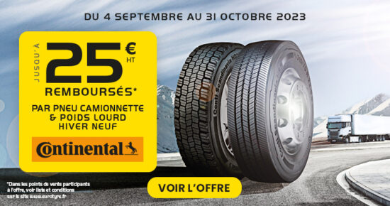 Du 4 septembre au 31 octobre 2023 pour l’achat de pneumatiques Poids Lourd neufs et Camionnette Hiver, TTS ou Eté […]