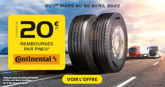 Du 1er septembre au 31 octobre 2021, pour l’achat d’un pneumatiques Poids Lourd hiver neufs Continental, bénéficiez de remboursement jusqu’à […]